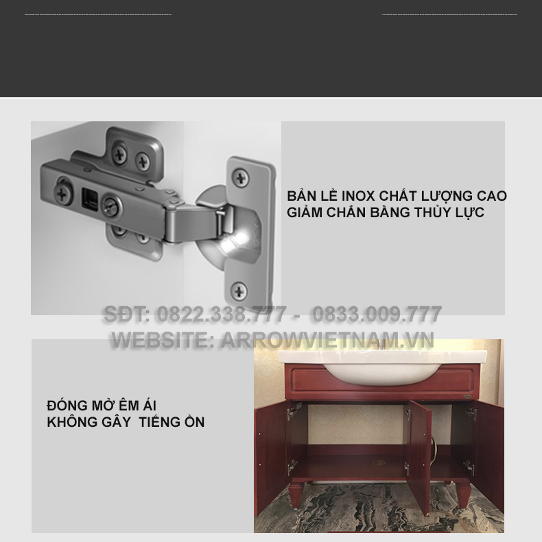 - Bản lề thiết kế giảm chấn hút thủy lực, chất liệu thép không gỉ cao cấp.