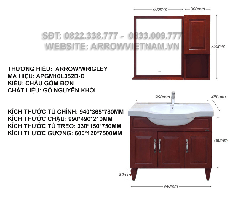 Thông số kỹ thuật Bộ tủ phòng tắm APGM10L352B-D