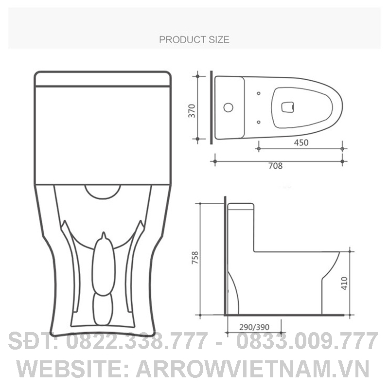 Thông số kỹ thuật bồn cầu cao cấp ARROW/Wrigley AB1282M
