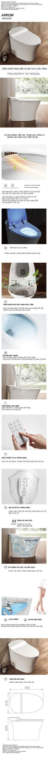 Thông số kỹ thuật bồn cầu thông minh ARROW/Wrigley AKB1303M