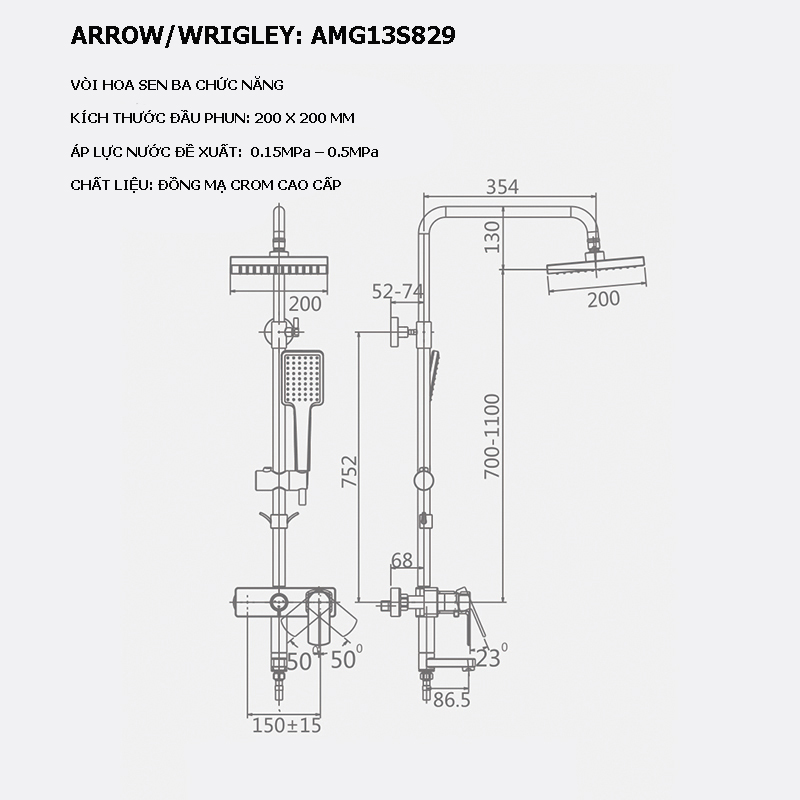 Thông số kỹ thuật Vòi hoa sen cao cấp ARROW – AMG13S829